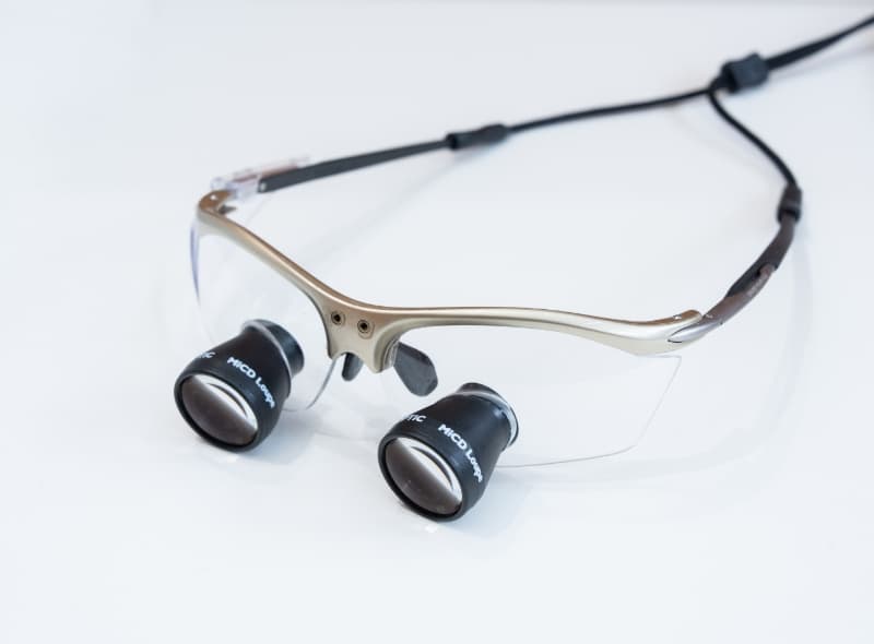 高倍率ルーペは、肉眼の数倍に拡大して口腔内を観察できる器具です。微細なむし歯の発見や、精密な根管治療などに威力を発揮します。