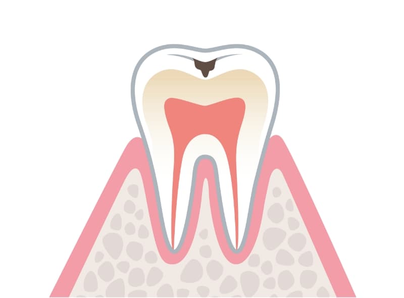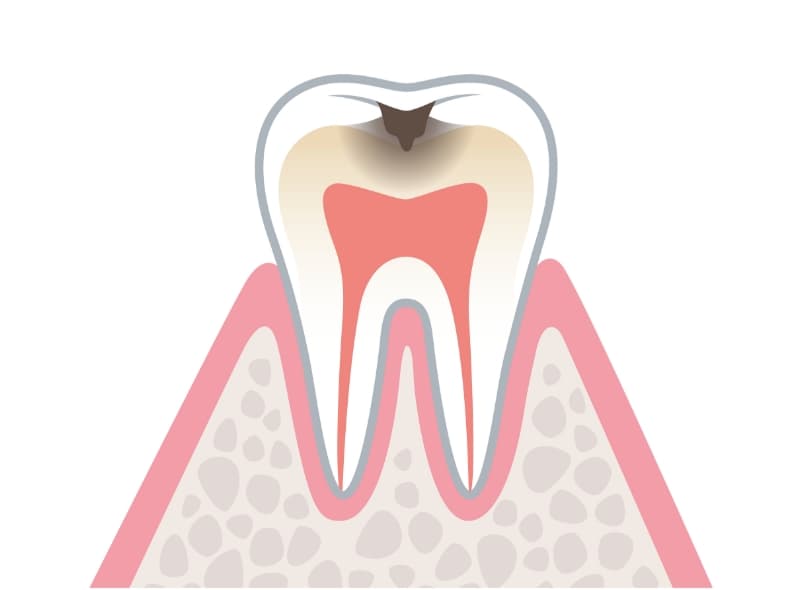 むし歯が進行し、エナメル質が溶け始めると、歯の表面に小さな穴が開きます。この段階では、むし歯を除去し、適切な詰め物で修復する必要があります。状態によっては、詰め物を行わず、定期的な観察を行うこともあります。